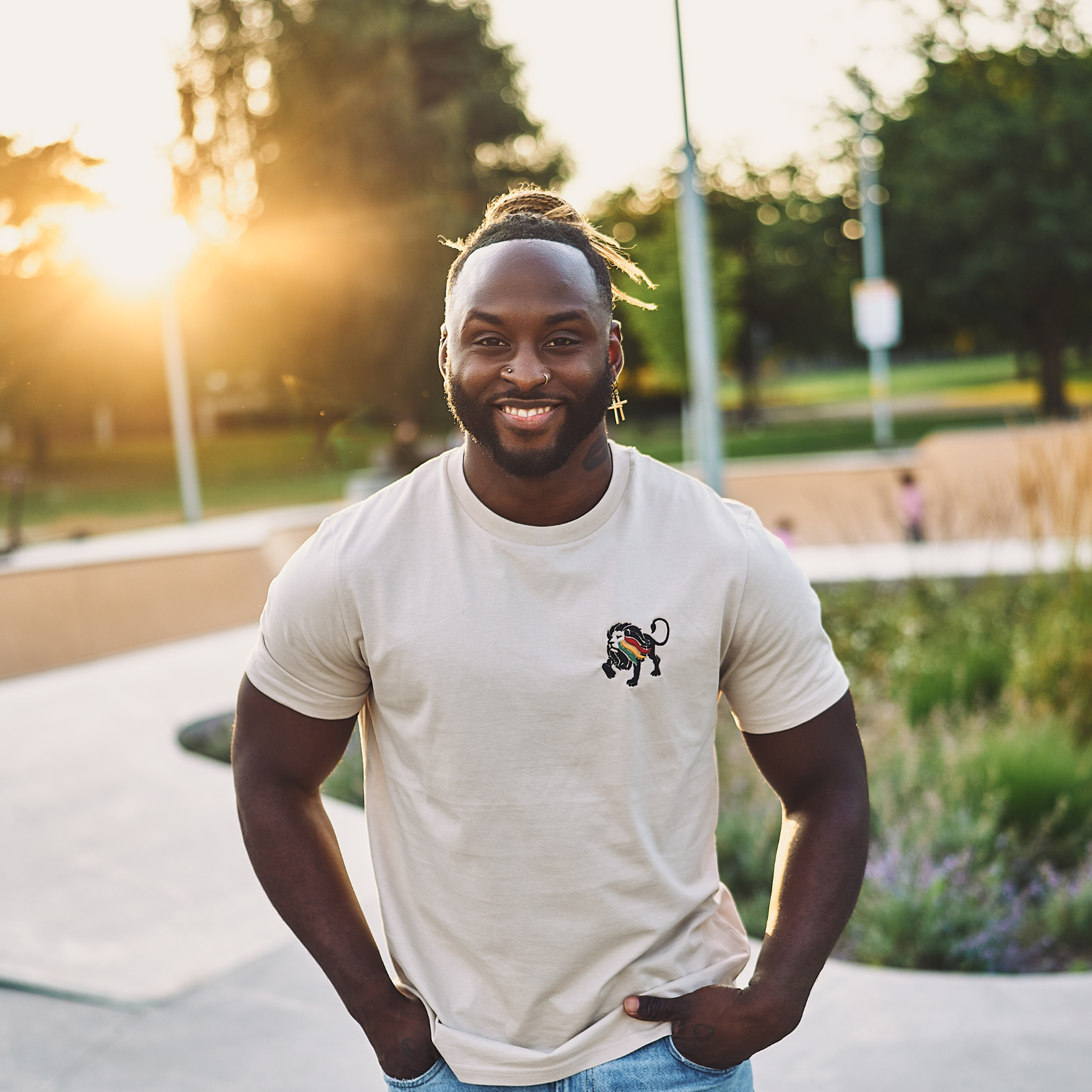 Das Humble Shirt – beige ist einfach next level – super weicher Stoff, top Qualität und ein lässiger Schnitt, der perfekt sitzt. Der Löwenstick auf der linken Brust ist das Highlight – edel, stark und direkt am Herzen 🦁✨.