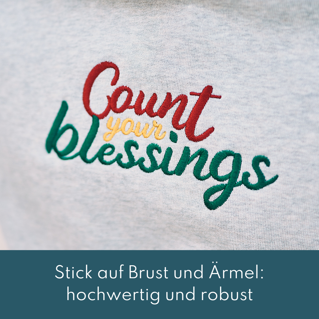 Count your blessings – konzentriere dich auf die positiven Dinge im Leben! Sei dankbar für deine Gesundheit, deine Familie, deine Freunde, ein Dach über dem Kopf, Sicherheit oder all die kleinen Dinge, die viel zu oft als selbstverständlich hingenommen werden. Richte den Fokus auf diese schönen Dinge – gerade in schwierigen Zeiten.