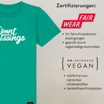 Angefangen mit umweltschonender Bio-Baumwolle über faire Bedingungen in den Fabriken (Fair Wear Foundation zertifiziert) ohne Tierleid (PETA approved) bis zum plastikfreien und klimaneutralen Versand zu Dir nach Hause. Du kannst bei uns mit gutem Gewissen shoppen!