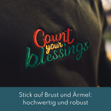 Count your blessings – konzentriere dich auf die positiven Dinge im Leben! Sei dankbar für deine Gesundheit, deine Familie, deine Freunde, ein Dach über dem Kopf, Sicherheit oder all die kleinen Dinge, die viel zu oft als selbstverständlich hingenommen werden. Richte den Fokus auf diese schönen Dinge – gerade in schwierigen Zeiten.