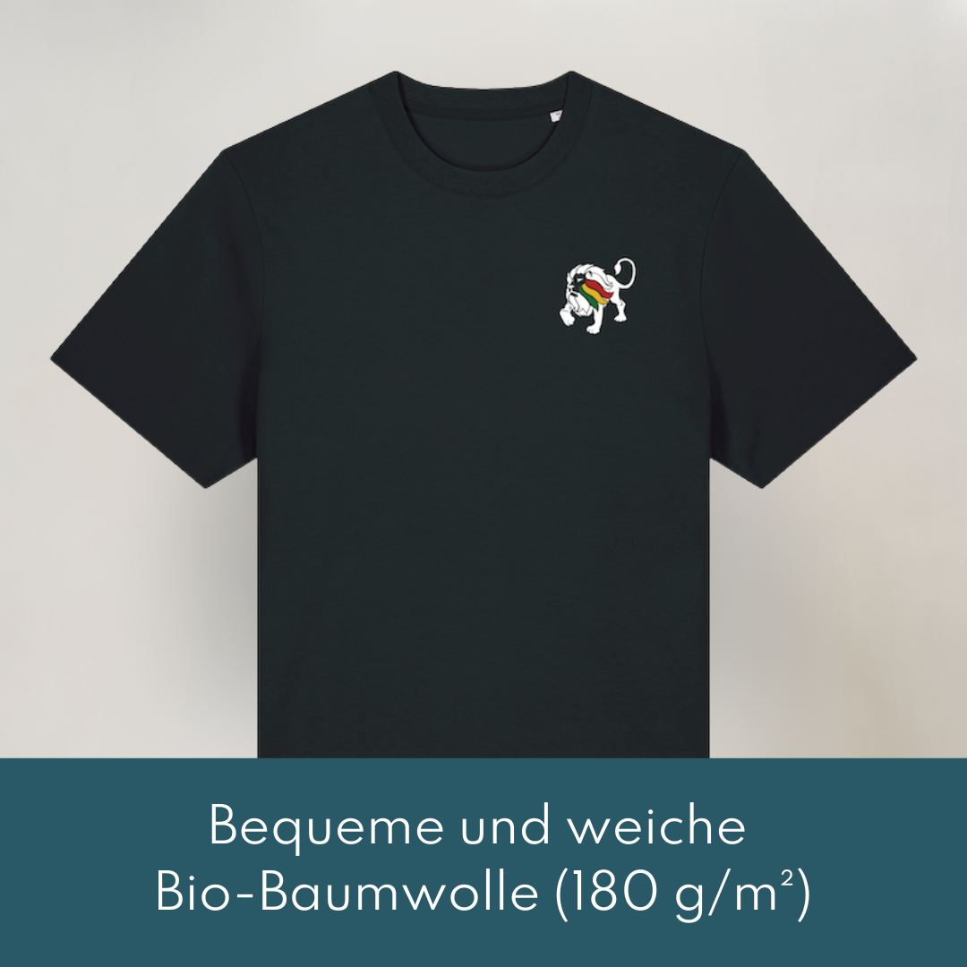 „Humble“ steht für Bescheidenheit und eine ruhige, geerdete Haltung. Der feine Stick zeigt Understatement, während der Löwe am Herzen für innere Stärke und Selbstbewusstsein steht. Zusammengefasst: „Humble but confident“ – dein täglicher Ausdruck von IRIE-Vibes!