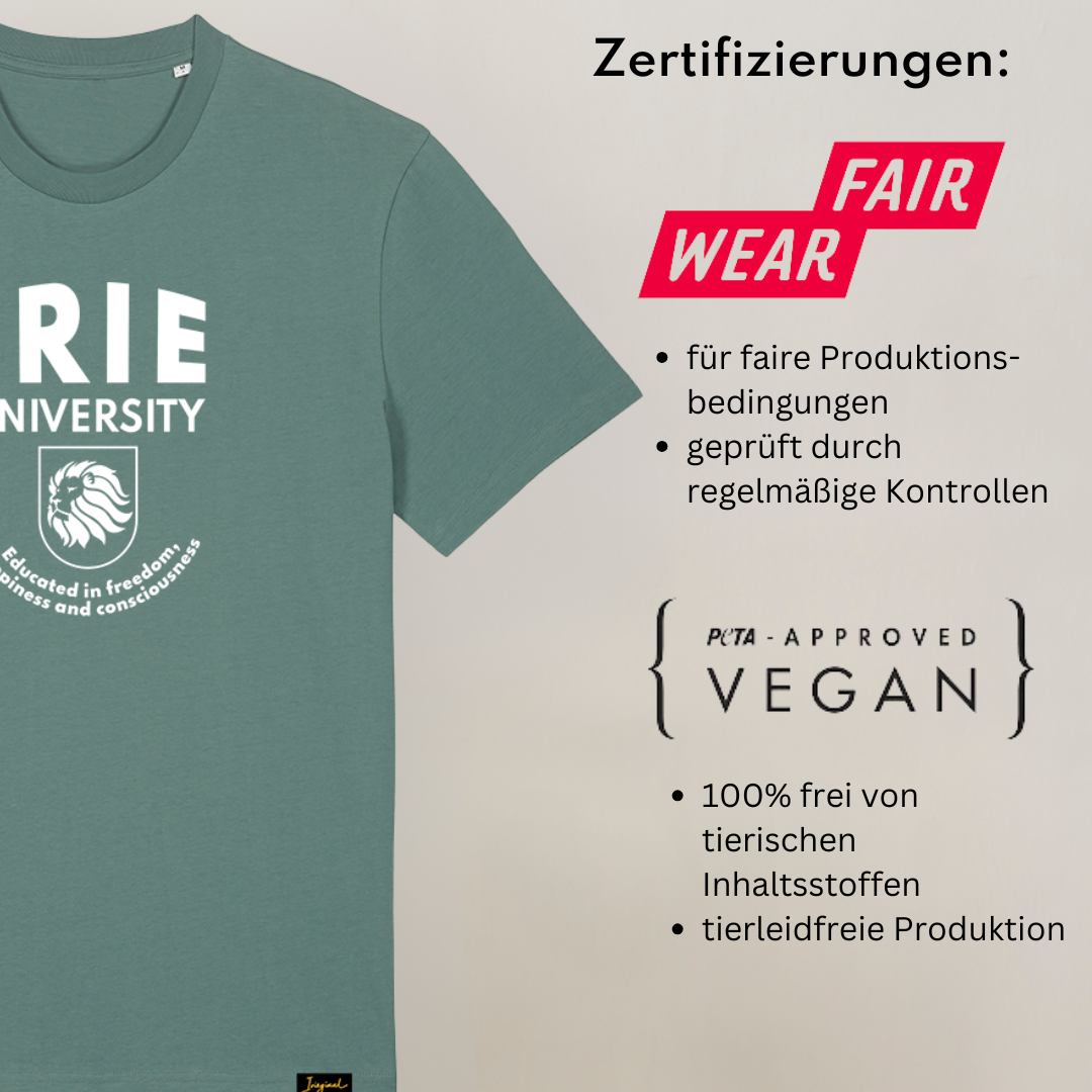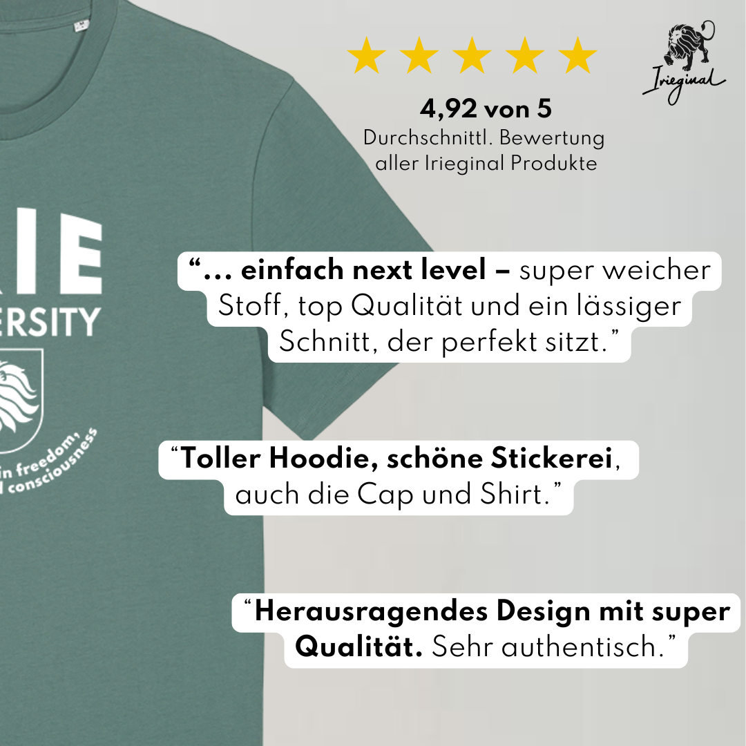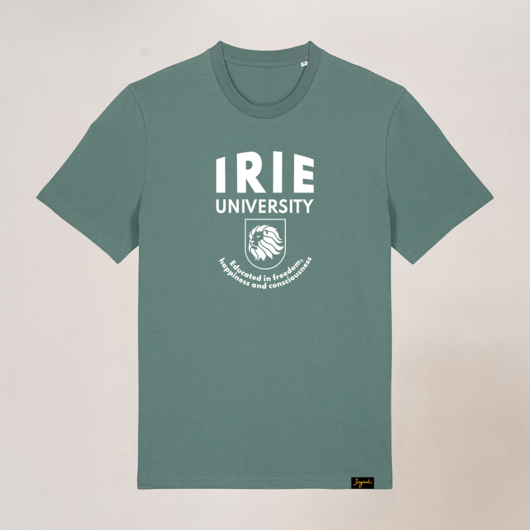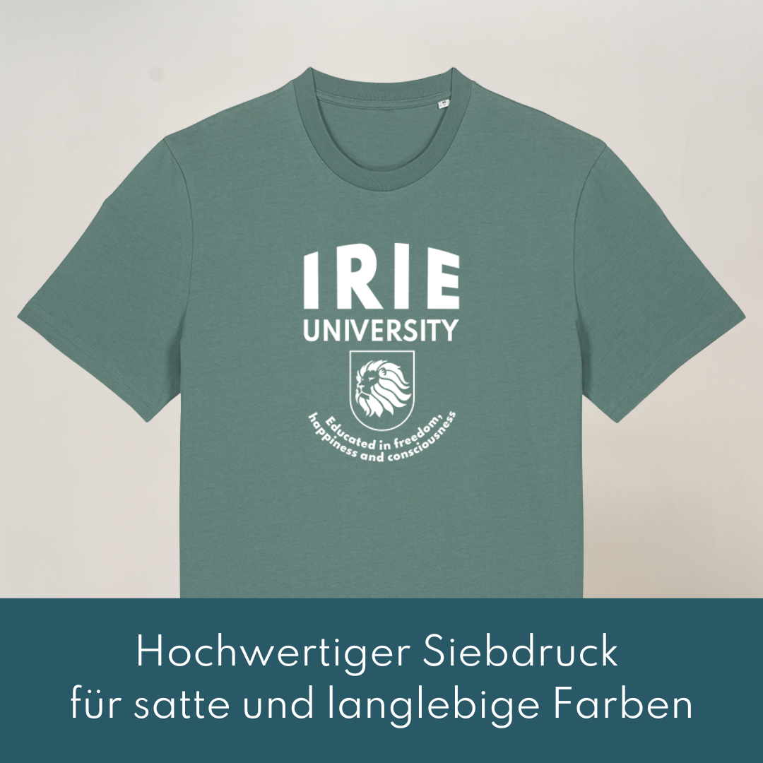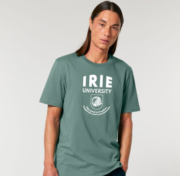 - IRIE UNIVERSITY Design als hochwertiger Siebdruck auf der Brust