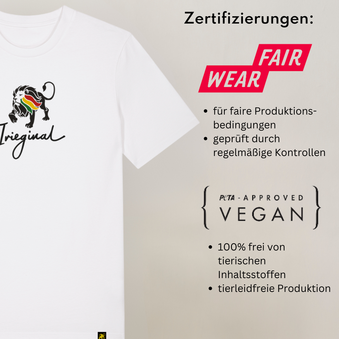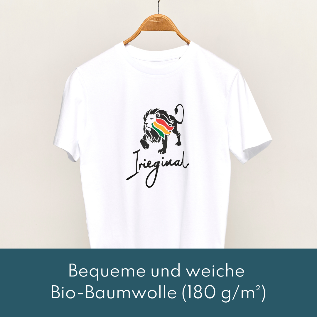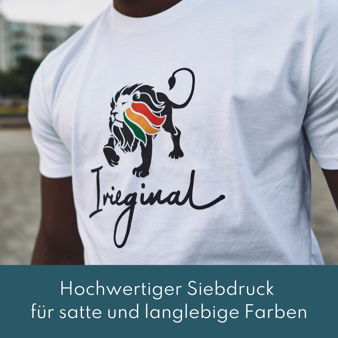 - Irieginal Logo als hochwertiger Siebdruck auf der Brust